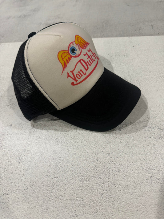 Vintage 00s Von Dutch Y2K Trucker Cap WHITE/BLACK MESH