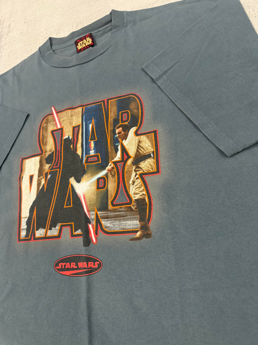Vintage 00s Star Wars "Obi Wan vs. Darth Maul Episode I Battle" Tee XL BLUE